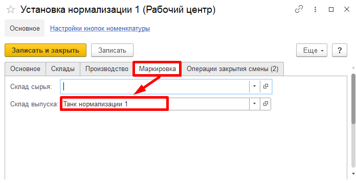 - Указан "Склад выпуска" в "Рабочем центре", вкладка "Маркировка";