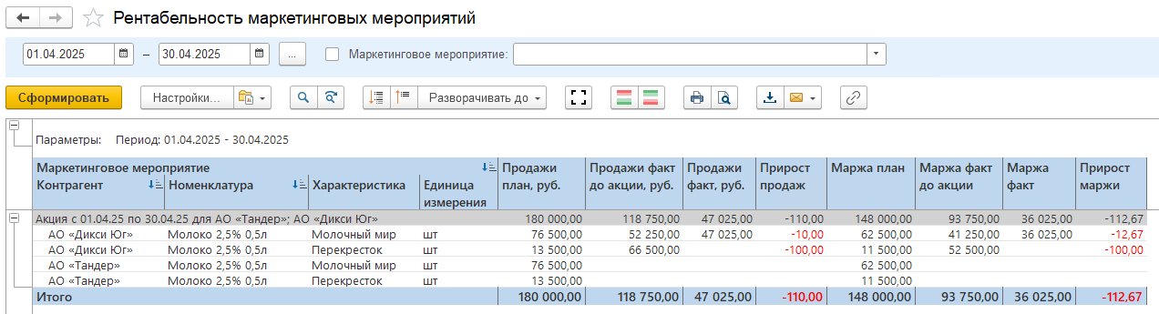 Отчет позволяет оценить рентабельность маркетинговых мероприятий после их завершения.