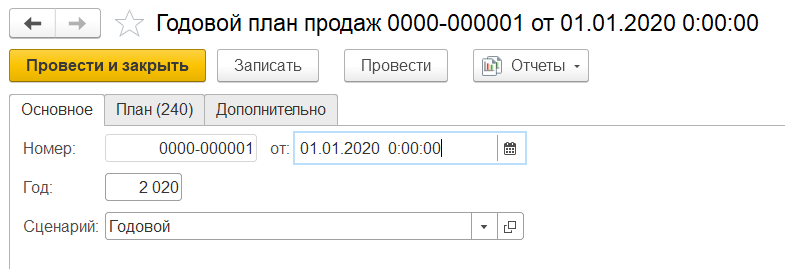 "Годовой план продаж" создается обычно в начале календарного года и является опорным планом на весь год.