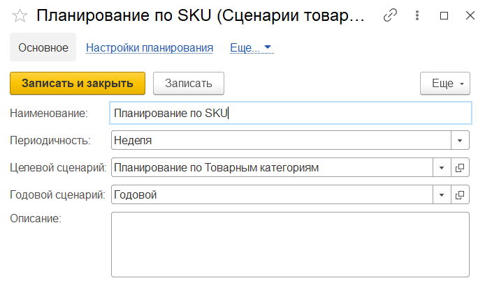 На каждый этап планирования необходимо в справочнике "Сценарии товарного планирования" создать сценарий планирования, по которому будет создаваться план продаж.