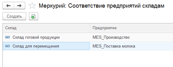 В регистре "Меркурий: Соответствие предприятий складам" устанавливается соответствие предприятий в ГИС Меркурий складам в 1С. Используется в АРМе ветеринарного врача при создании всех документов.