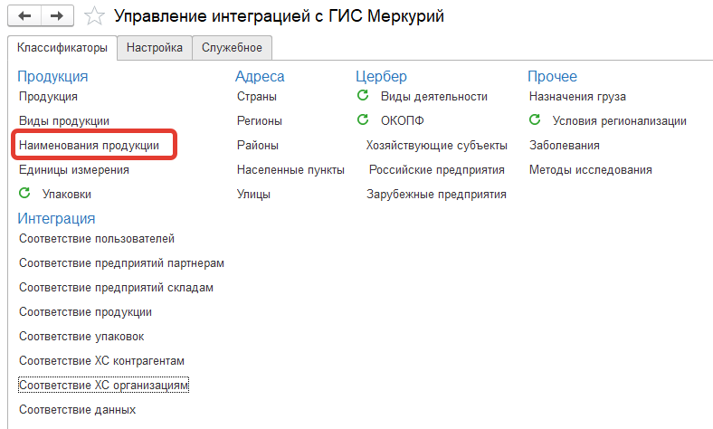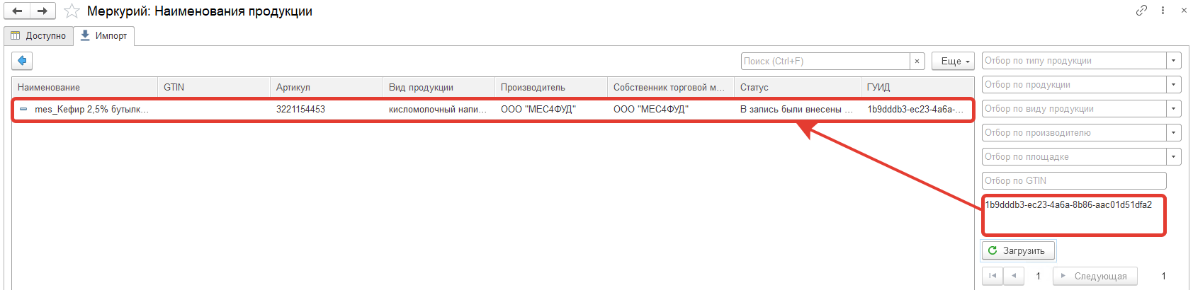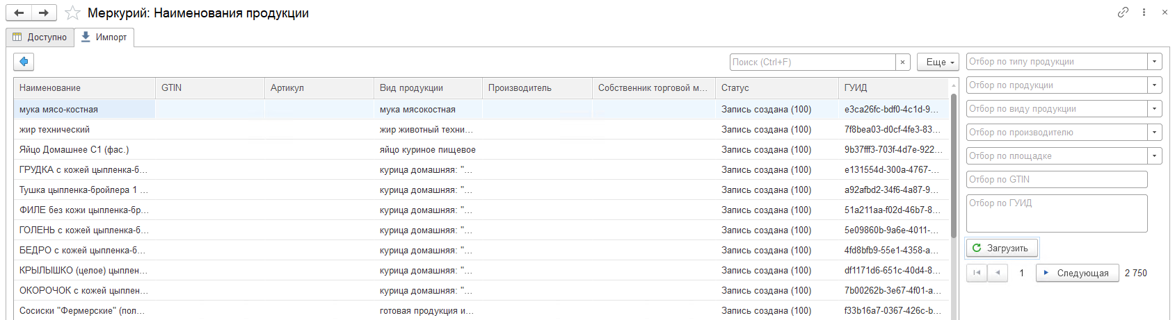 Наименования продукции можно загрузить по ГУИД, также они подгрузятся с ВСД и записями журналов.
