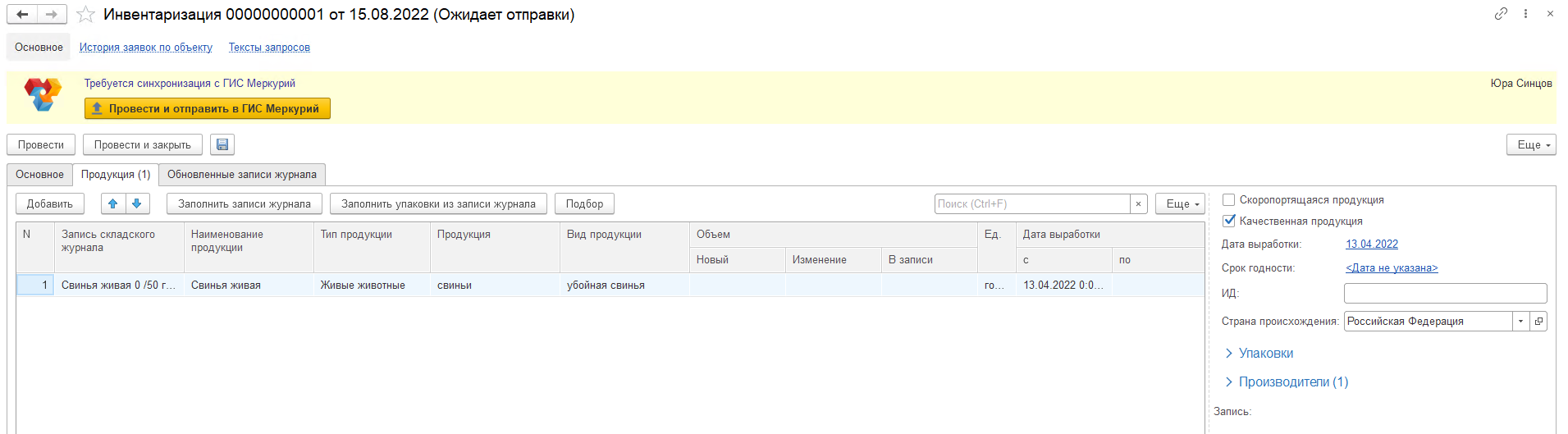 Для изменения записей журнала существует документ "Инвентаризация". С помощью инвентаризации можно изменить остаток, данные о сроках годности, полностью удалить запись журнала продукции или добавить новую.