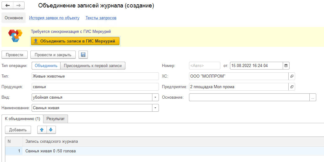 Автоматически записи можно объединить из АРМа ветеринарного врача, задав в правилах параметр формирования исходящих партий.