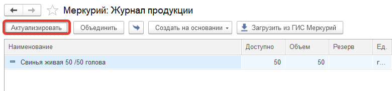 Для актуализации выбранных записей журнала из ГИС Меркурий, необходимо выделить нужные из общего списка записей журнала и нажать на "Актуализировать"