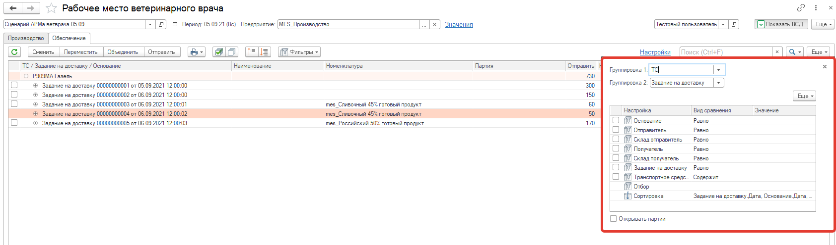 Настроить группировки и отборы можно через Настройки (задаются в сценариях).