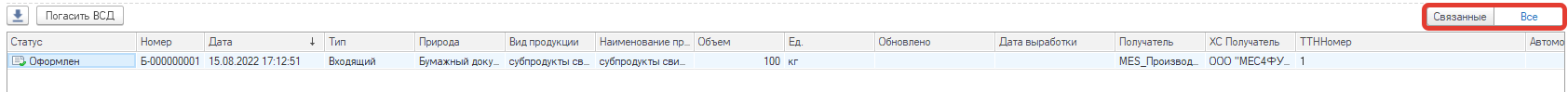 В нижней части АРМа отображён список ВСД. Можно отключить командой "Показать ВСД" ВСД можно отобрать по связанному документу. Связанный документ активизируется в закладках выше.