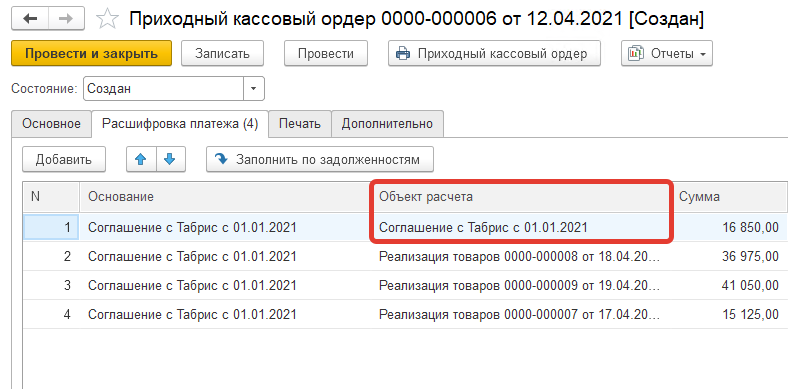 При этом в самих денежных документах будет также меняться объект расчета в табличной части