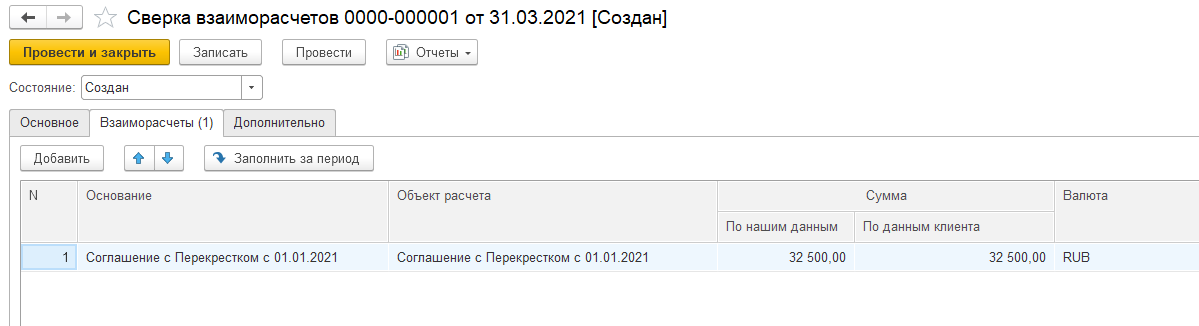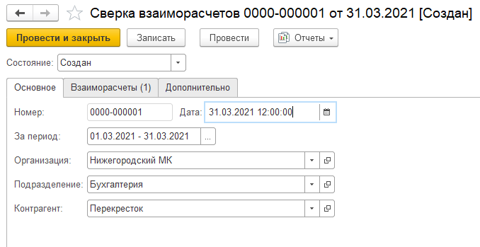 В документе "Сверка взаиморасчетов" на вкладке Основное заполняются: