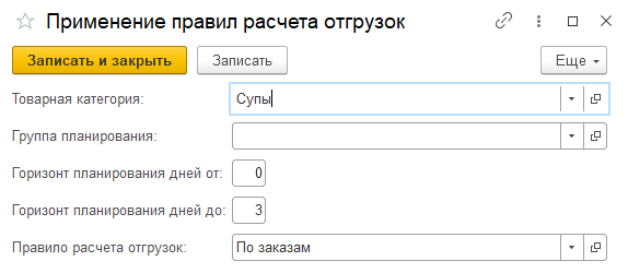 - Группа планирования - выбираем группу планирования, для которой применяем правило расчета отгрузок;