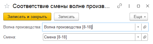 Указываем Волну производства и соответствующую ей Смену, нажимаем кнопку "Записать и закрыть".