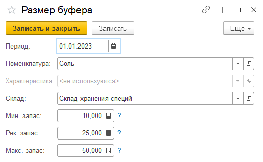 - Номенклатура - позиция номенклатуры, для которой вводим размер буфера;