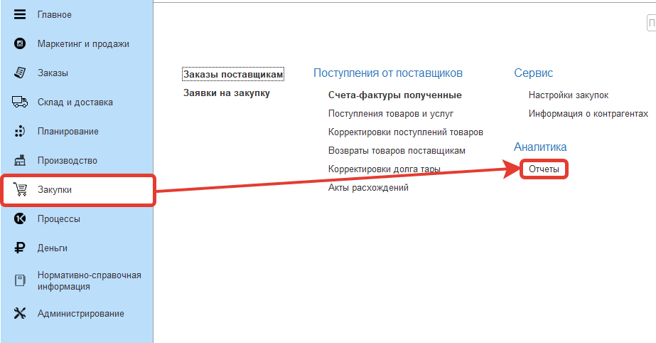 Отчет "Анализ закупок" - демонстрирует качество сервиса поставщиков.