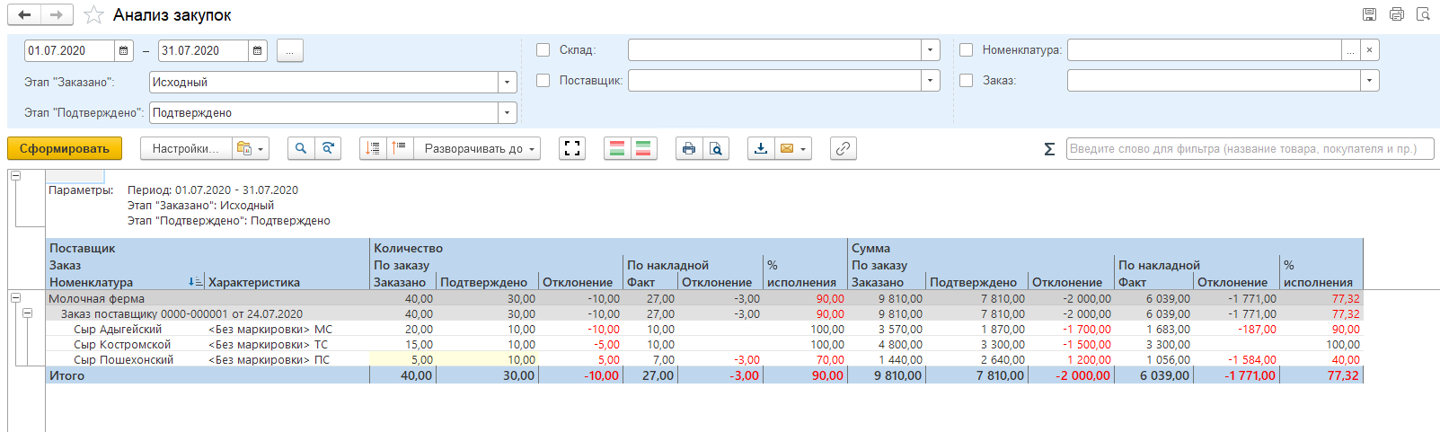 Сформируем отчет за период 01.07.2020-31.07.2020: