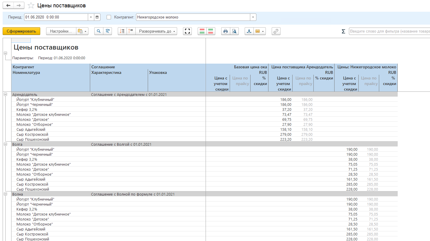 Отчет "Цены поставщиков" - позволяет просматривать актуальные цены поставщиков.