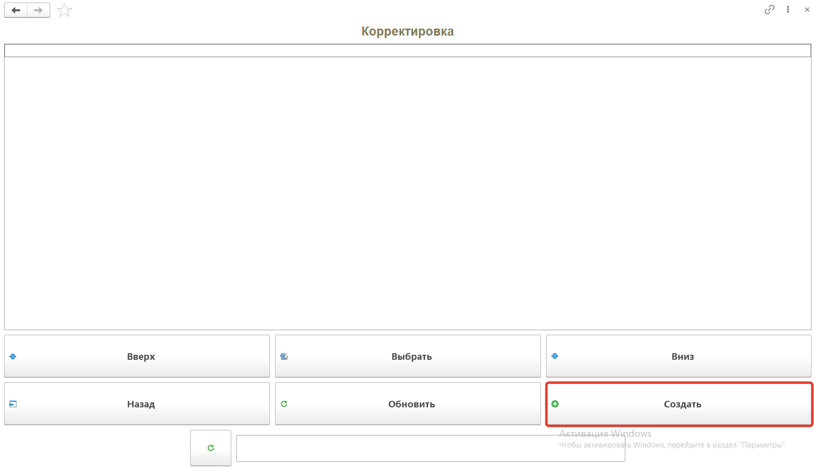 На открывшейся форме надо нажать кнопку "Обновить", будут выведены "Распоряжения на перемещения" с типом "Пересчет" в статусе "К выполнению". В списке при помощи кнопок "Вверх" и "Вниз" переходим к распоряжению по которому будем делать перемещение, нажимаем кнопку "Выбрать". С помощью кнопки "Создать" можно создавать новые распоряжения на перемещение.