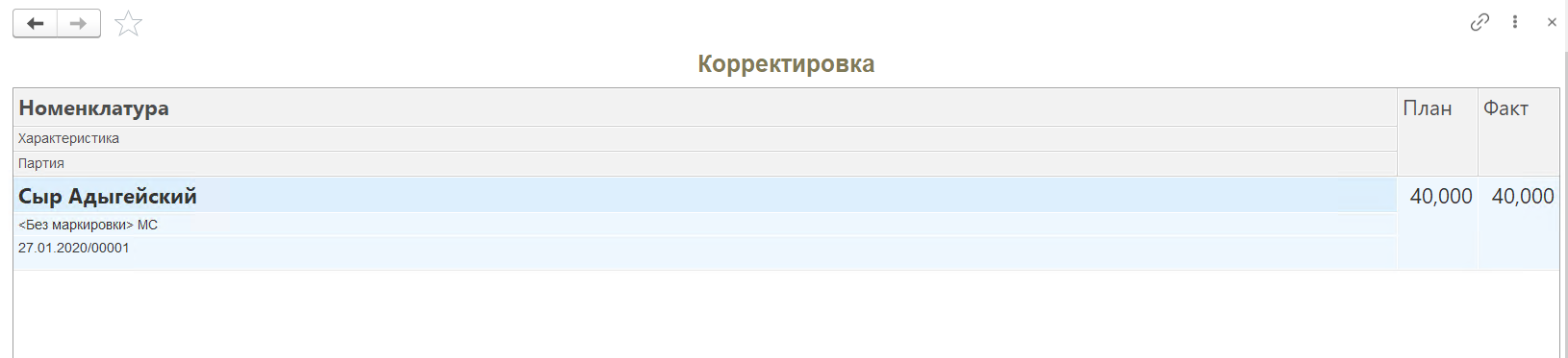 На форме появится таблица с плановыми и фактическими остатками.