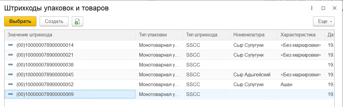 В открывшемся окне выбрать нужное "Значение штрихкода"