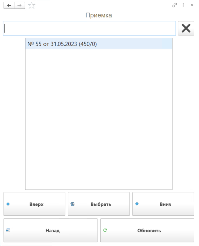 Выбираем "Заказ на перемещение", по которому будет осуществляться приемка.