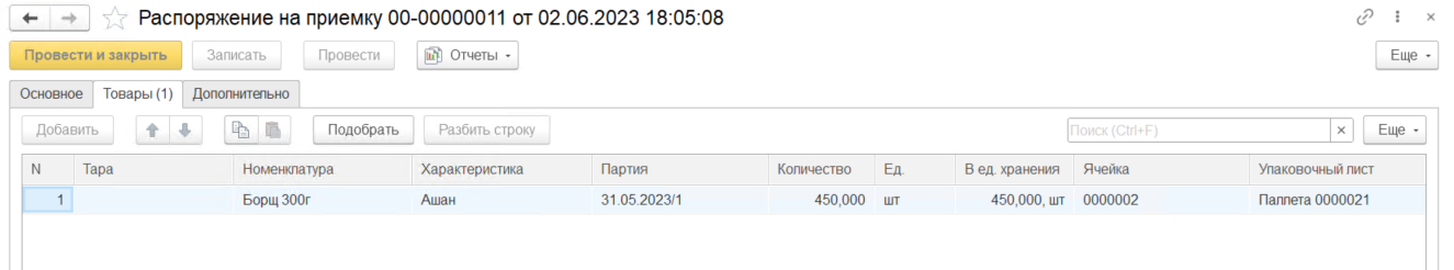 В результате будет создан документ "Распоряжение на приемку".