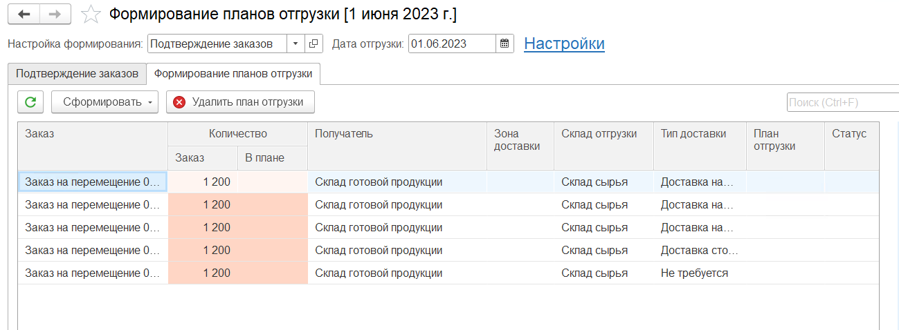 - общее - в этом случае будет сформирован общий план отгрузки для всех выбранных заказов
